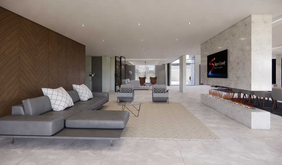 A striking example of contemporary luxury architecture. Featuring bold, dark masses contrasted with light paving and natural stone cladding, creating a sophisticated, modern aesthetic. Clean lines, expansive driveways and a mix of open and private facades define this high-end residential project, emphasizing both style and scale.